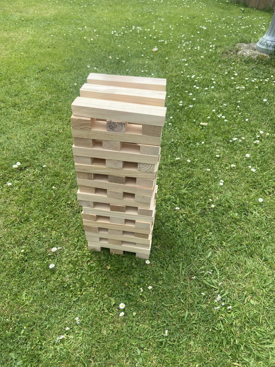 Our old time family classic Jenga in mini blocks so you can enjoy with the smaller ones, hours of fun to have lets see who tumbles first a great added extra for all parties. Great for indoor and outdoor use.