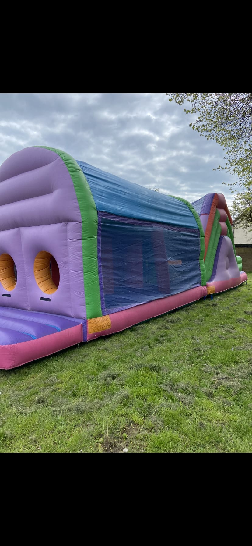 Obstacle Course with slide would require plenty of space to set up, great for hours of fun for large or smaller events this comes in two parts and only suitable for 2 users per sections at any time.