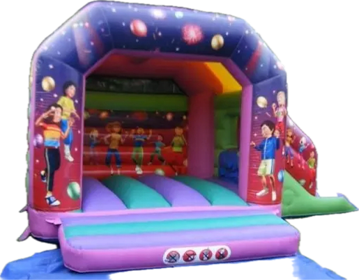 Disco dancing slide combi castle brilliant for a unisex or joint birthday party. This combi is a side slide which allows more bounce space for the kids to enjoy.
